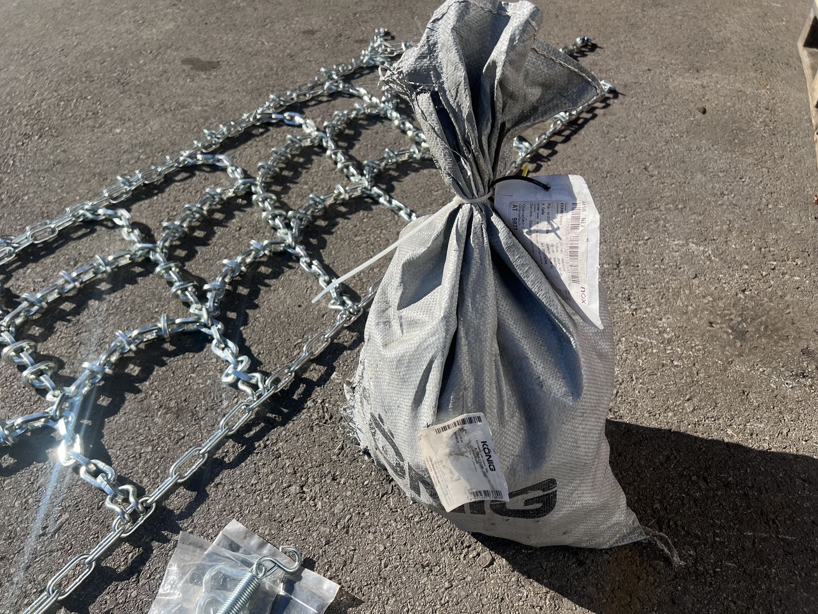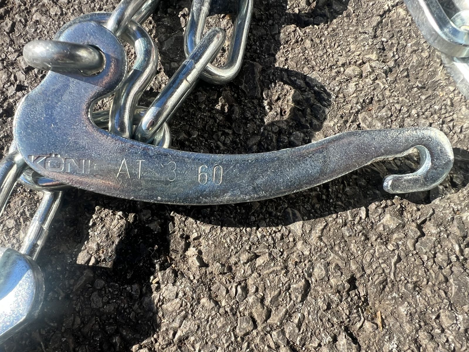 Es handelt sich um 1 Paar nagelneue Doppelspur-Schneeketten der Marke KÖNIG, Kettenbezeichnung "A-Traktor 3360",