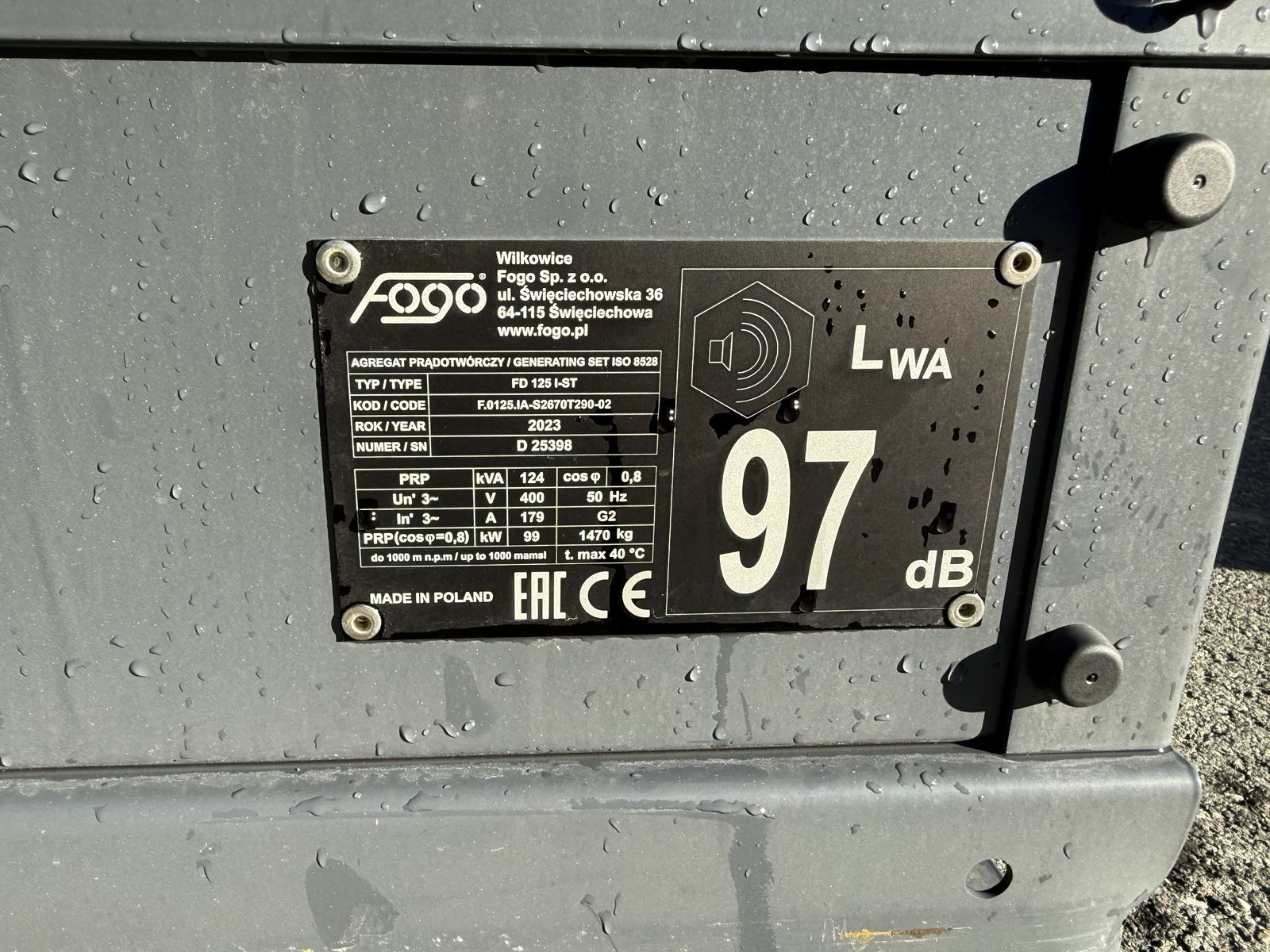 FOGO 175 KVA mit FPT Iveco Motor und Steckdosenpaket 21.900.--