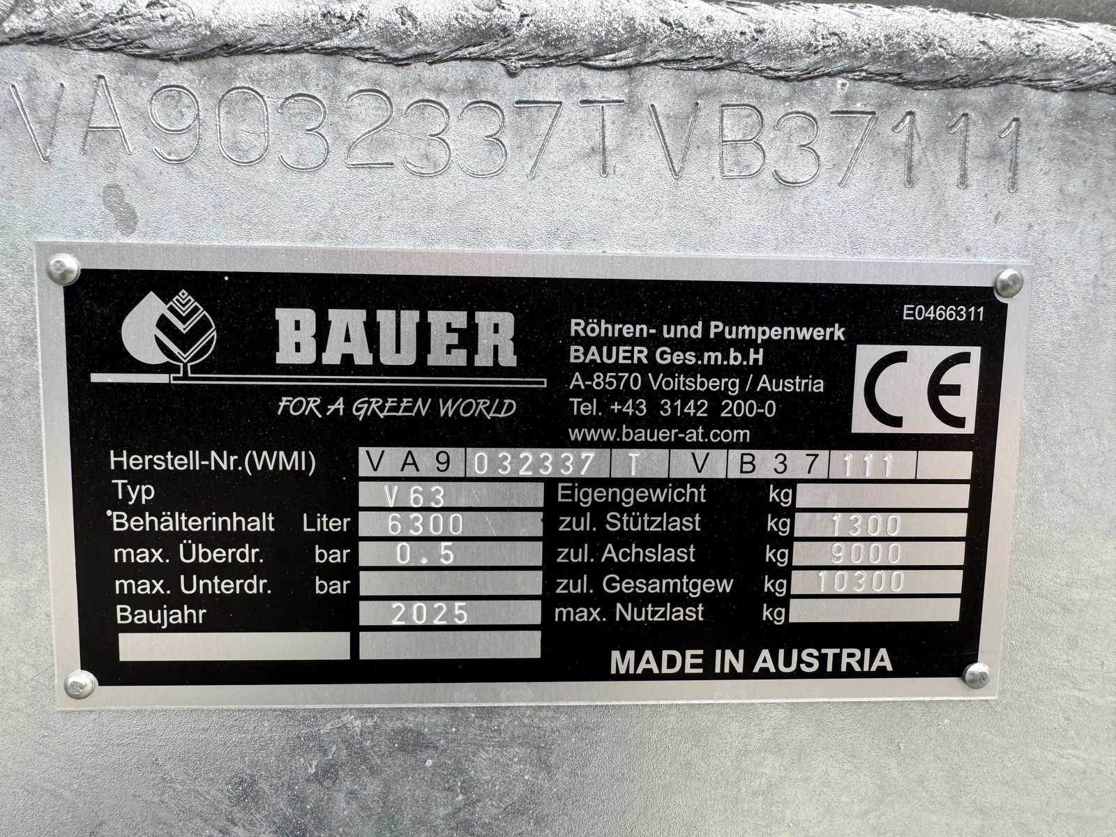 Bauer V63 Vakuumfass mit 6250 Liter Inhalt