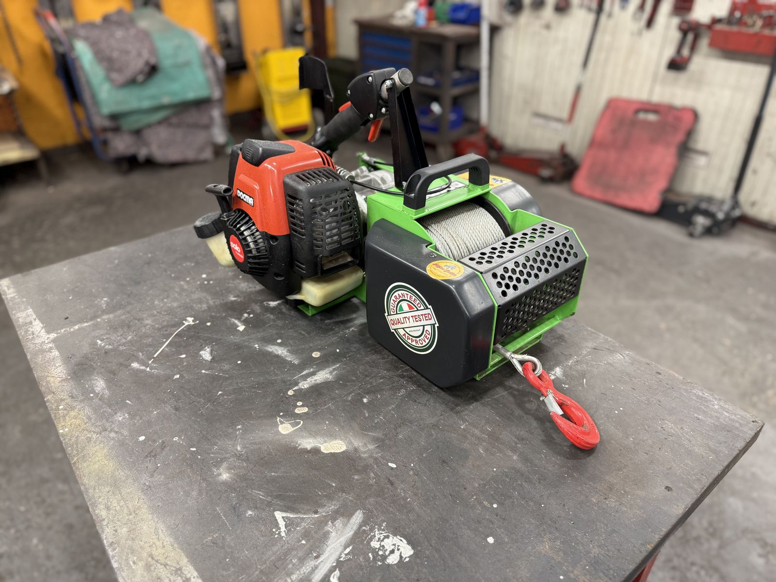 Neuwertige tragbare Seilwinde von Docma mit 2-Takt Motor von Solo - Der unverzichtbare Helfer im Wald!