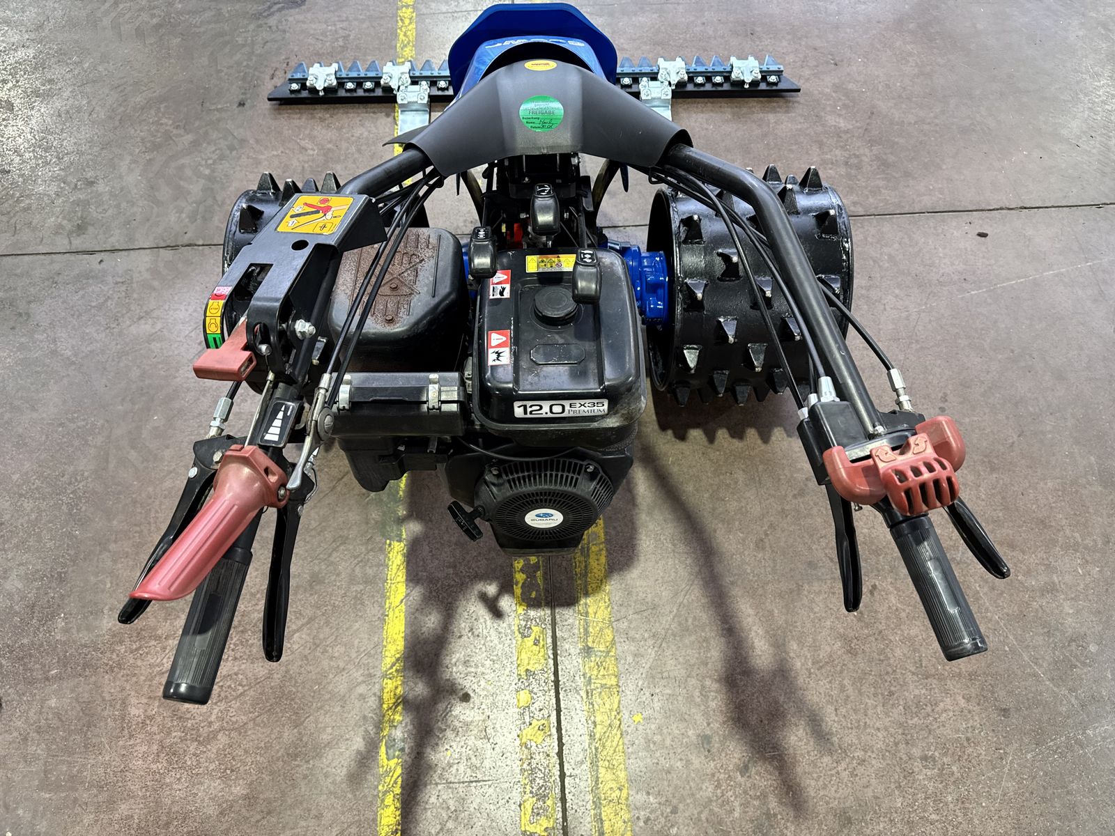 Dieser Mäher befindet sich in einem sehr guten Zustand und ist komplett mit neuem Mulchbalken 135 cm, Subaru Benzin Motor und Stachelwalzen ausgestattet.