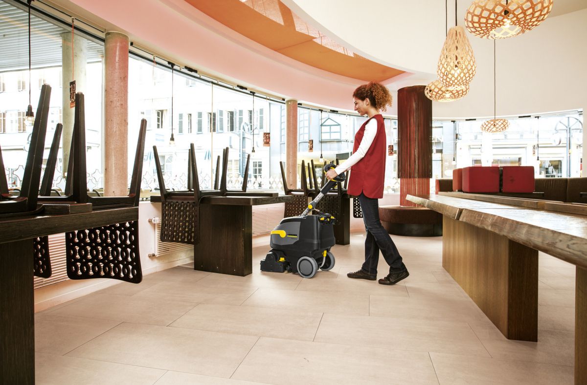 Die Kärcher BR 35/12 C Bp Pack ist ein sehr kompakter, leichter und wendiger Batterie-betriebener Scheuersauger für Flächen bis 1000m² aber auch enge Bereiche. Dank drehbarem Bürstenkopf lässt er sich extrem agil manövrieren, reinigt vorwärts und rückwärts, ist leicht genug für Treppen und trocknet den Boden sofort rutschfest ab. Ideal für Geschäftsflächen, Restaurants, Büros, Toiletten, Tankstellen oder Supermärkte.