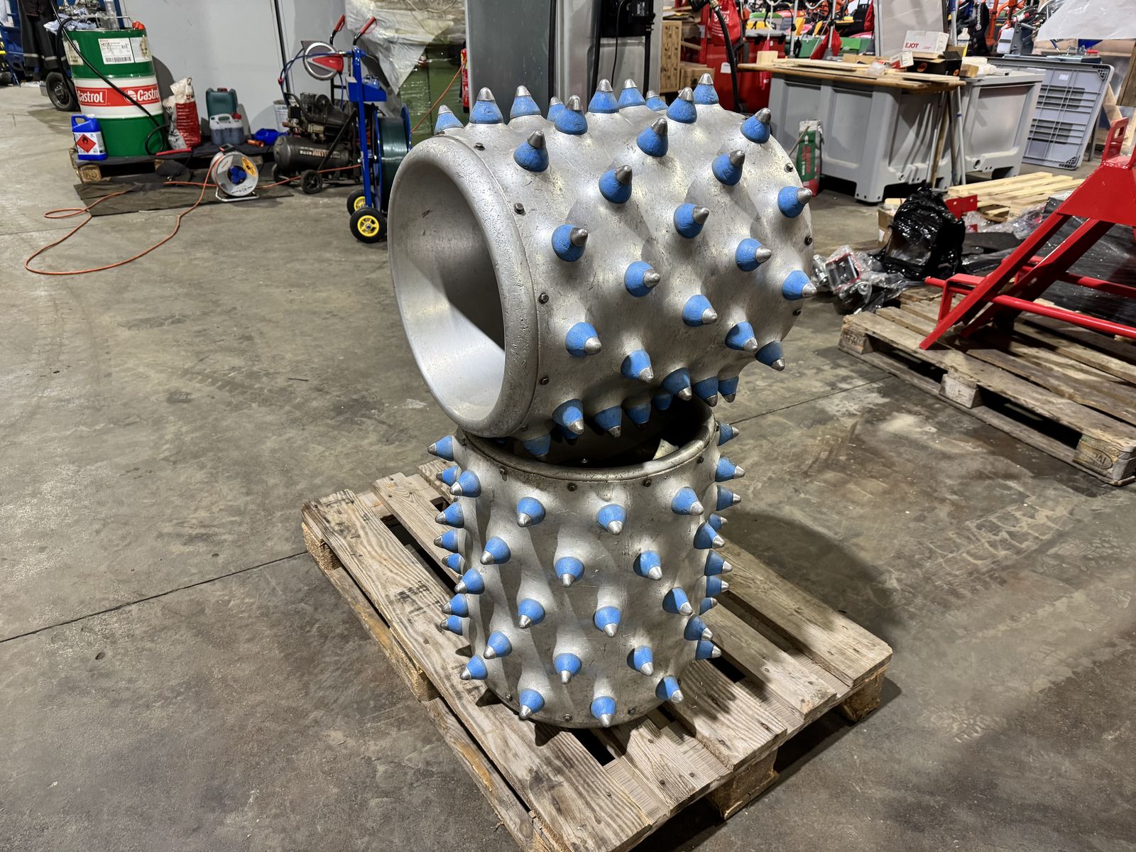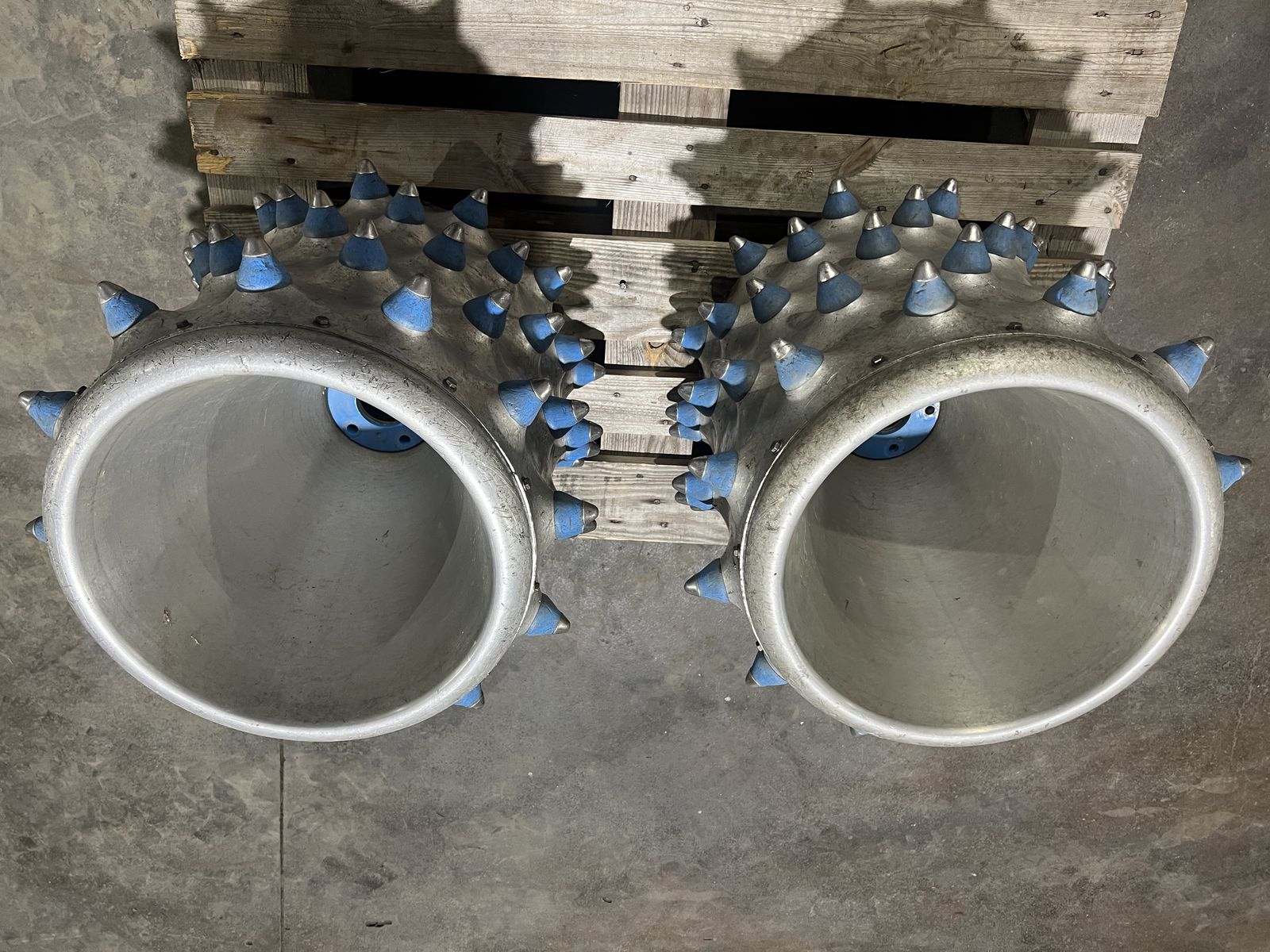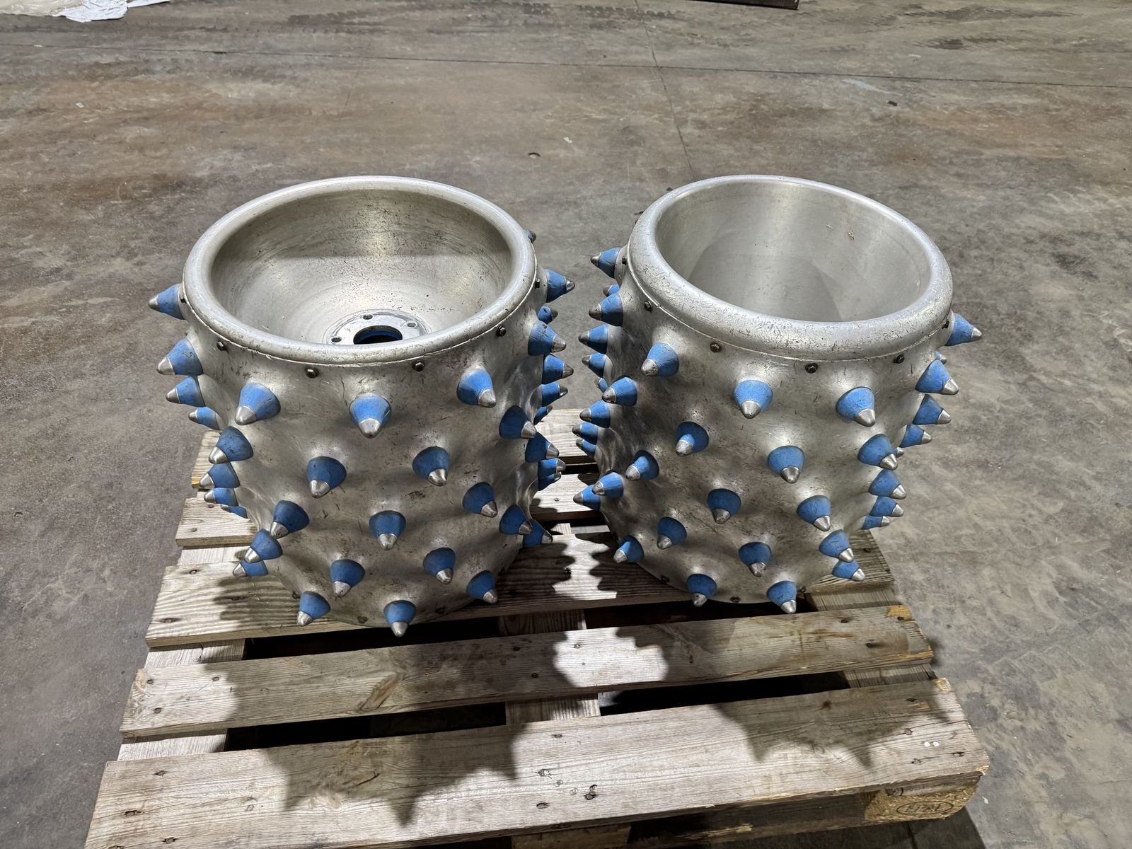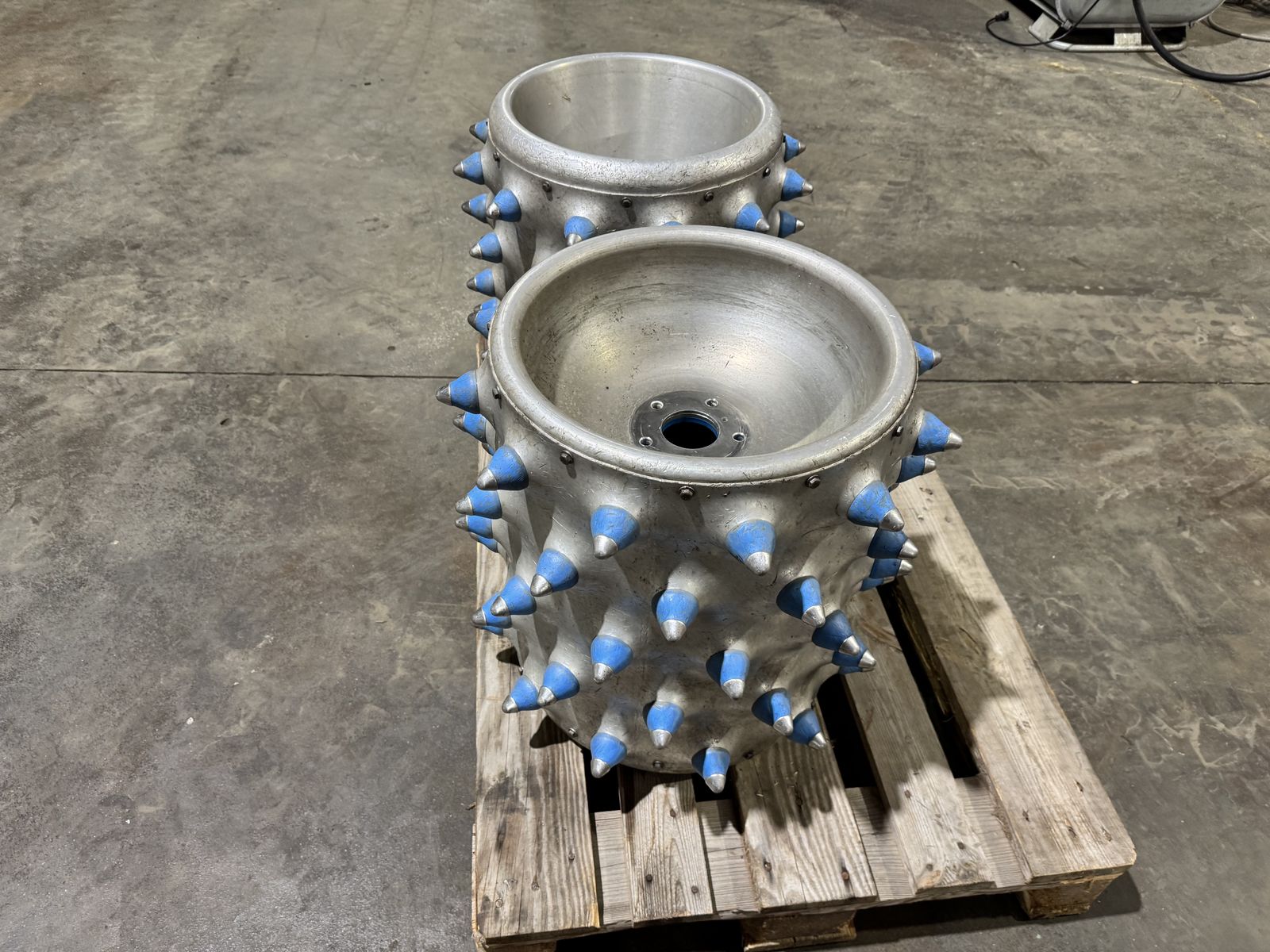 Alu-Stachelwalzen passend für alle Brielmaier-Motormäher, mit Metallspitze, Außendurchmesser 55 cm, Breite 55 cm.