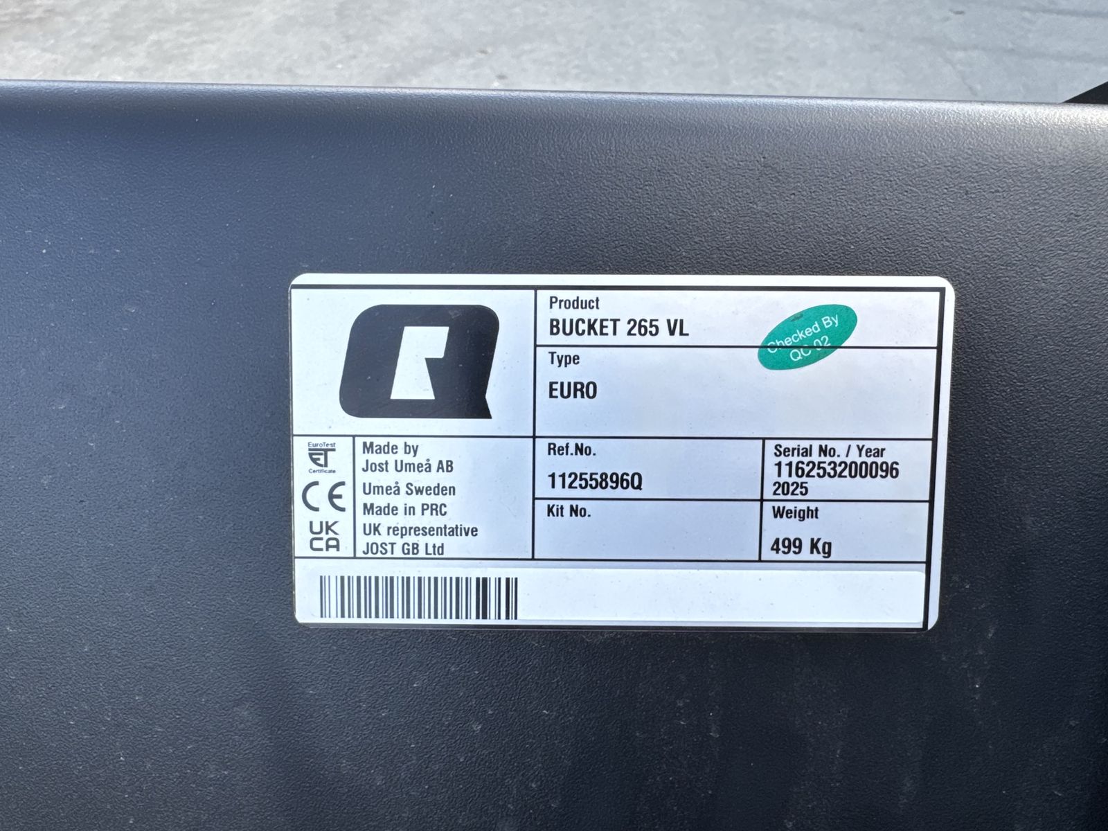 Quicke Universalschaufel VL 265 in folgender Ausführung: